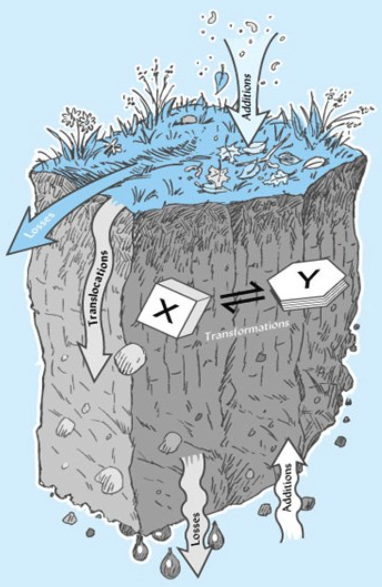 e.g. evaporation, erosion, decomposition, leaching