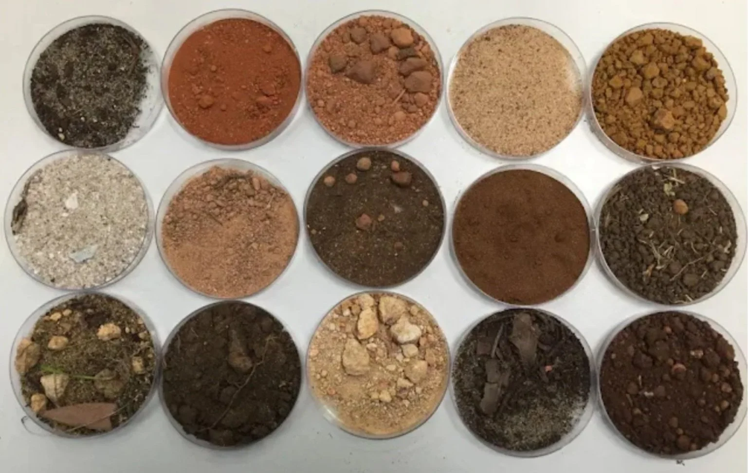 Soil colors are not limited to dark brown or black with gray, red, or yellow or their intermediates. There are some soils with various other shades, generally as a result of other minerals present in the parent materials.
