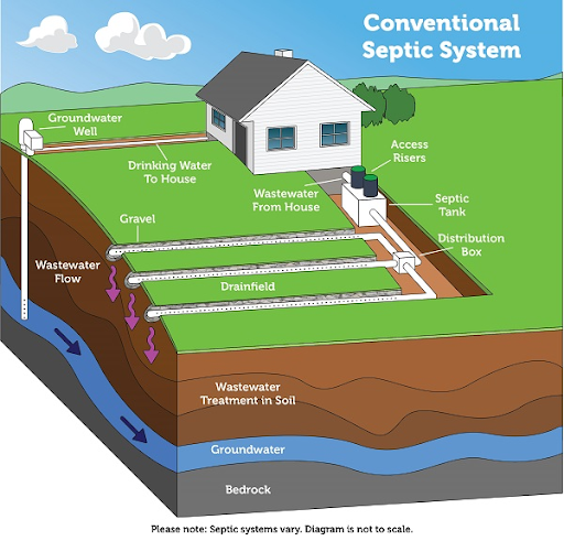 In addition to these components, some septic systems may also include pumps, alarms, and other specialized components to improve performance and ensure proper operation. Regular maintenance, such as pumping the septic tank and inspecting the system, is also important to ensure that the system continues to function properly.