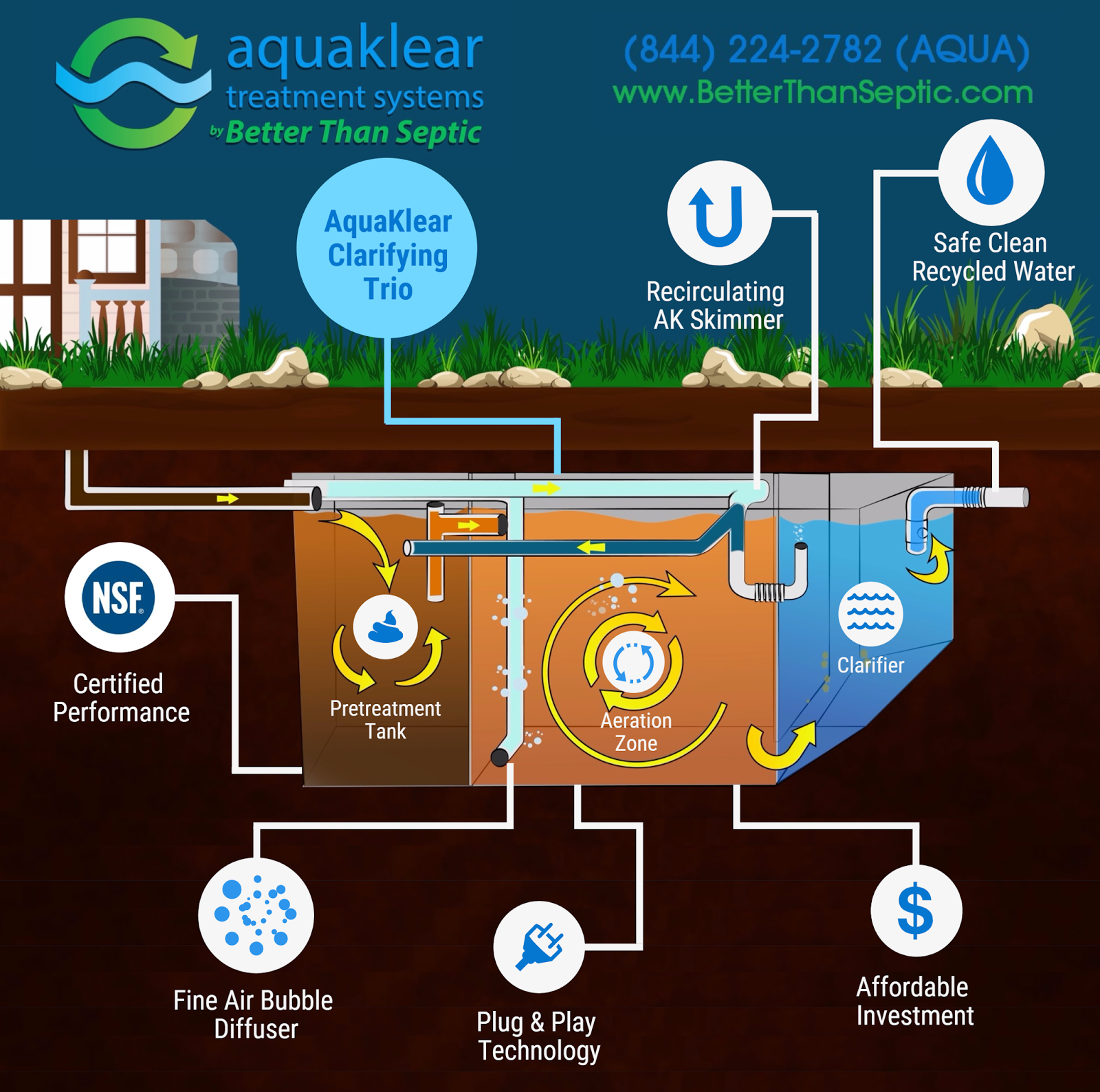 Aquaklear is a type of alternative septic treatment system that uses innovative technology to treat wastewater: